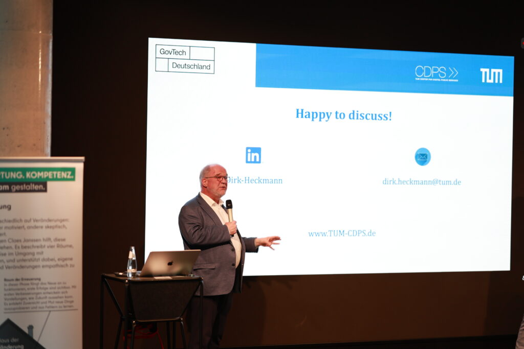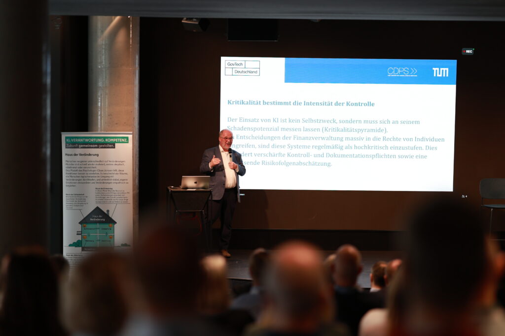 Am 24. März 2026 hielt CDPS-Direktor und Mitglied des bidt-Direktoriums Prof. Dr. Dirk Heckmann im Rahmen einer Fortbildungsveranstaltung von GovTech Deutschland in Berlin einen Impulsvortrag zum Thema „Rechtliche und ethische Bedingungen für den verantwortungsvollen KI-Einsatz“ mit anschließendem Q&A. Zielgruppe waren etwa 120 Führungskräfte der Berliner Finanzverwaltung.